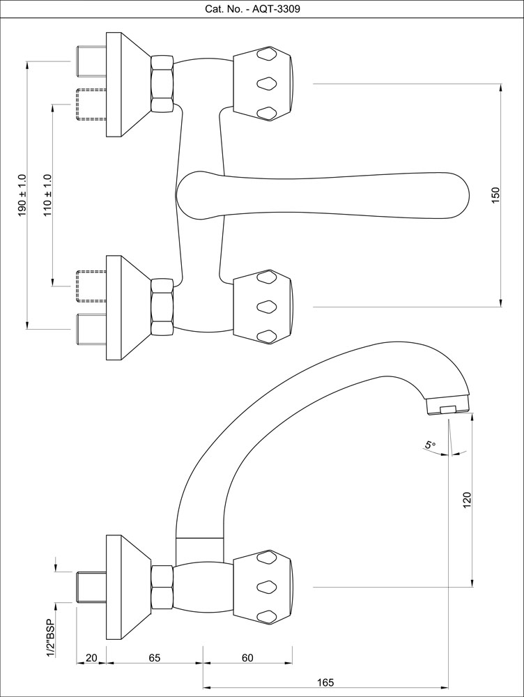 Sink Mixer with Swivel Pipe Spout, Wall Mounted